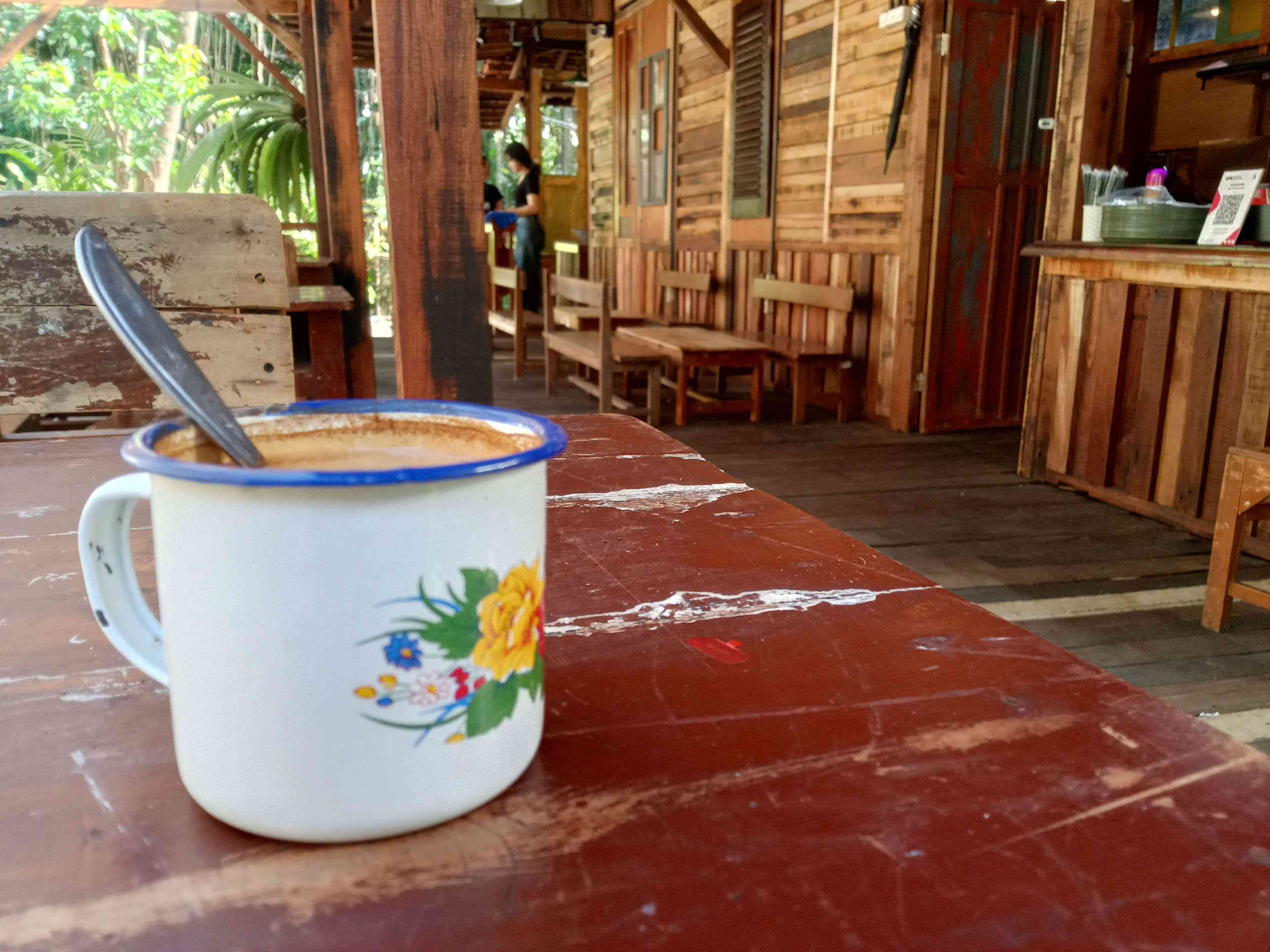 Berjalan santai 600 meter seraya menghirup oksigen dari pepohonan, menuju sebuah kedai kopi. Sebelumnya pernah nongkrong di sini. Bagi saya, tempat ini menjadi semacam oase yang hangat, otentik, dan tenang di tepi jalan raya yang riuh.