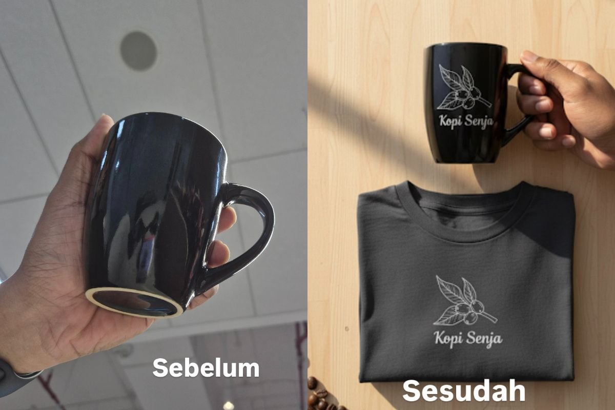 Selain itu, kamu bisa melanjutkan proses kreatif dengan prompt, "Sekarang, buatkan mock-up pada mug yang menampilkan logo tanaman kopi, lalu tambahkan kaos dan hias sekitarnya dengan ornamen estetik bertema kopi seperti biji kopi dan elemen kayu." Dengan kamera utama 50MP menangkap warna dan tekstur asli dengan presisi, setiap hasil olahan AI terlihat natural dan profesional.